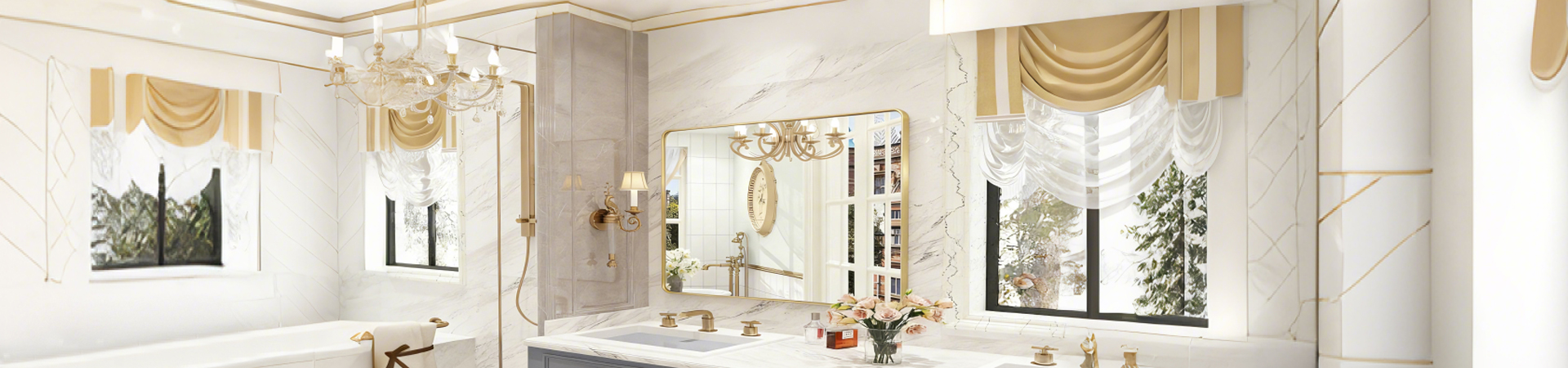 3. Rich and contemporary brass surrounds bring luxuriousness to any space built for primping.